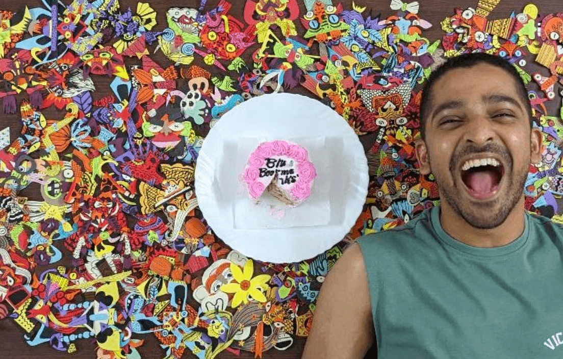 Blu wanted to test the theory: “If we do something over and over again, the world shall open up to us.” This passion project, undertaken as a studio practice under “Out of Blu,” delves into the realm of paper art. Paper art serves as a simple, accessible medium to tap into our inner creativity. Blu's aim was clear: craft 100 monster-themed bookmarks to both explore the medium and simply enjoy the process.